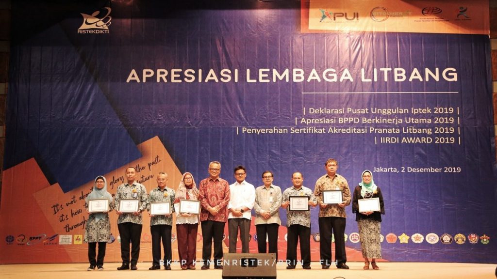 Penerimaan sertifikat KNAPPP pada acara Apresiasi Lembaga Litbang Tahun 2018