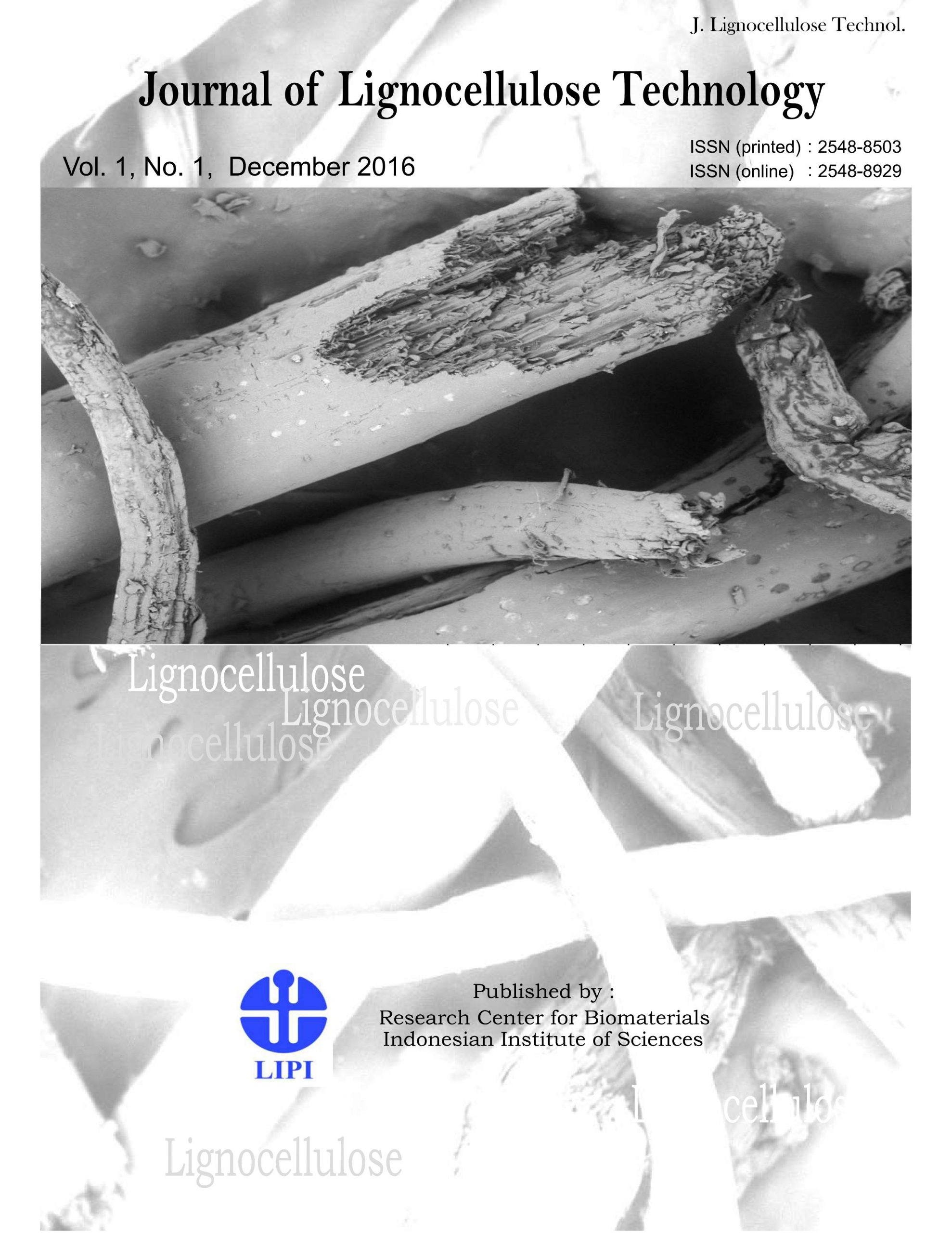 Journal of Lignocellulose Technology (J. Lignocellulose Technol.) merupakan jurnal ilmiah yang dikembangkan Pusat Penelitian Biomaterial LIPI sebagai PUI Lignoselulosa. Jurnal ini mengakomodasi publikasi-publikasi ilmiah hasil penelitian di bidang lignoselulosa. Dalam Jangka panjang, jurnal ini diharapkan menjadi jurnal yang terakreditasi dan terindeks global. J. Lignocellulose Technol telah memiliki ISSN (printed) : 2548-8503 dan ISSN (online) : 2548-8929 yang terbit pertama kali pada bulan Desember 2016. Saat ini, website jurnal sedang proses migrasi ke laman berikut ejournal.lipindonesia.com.
