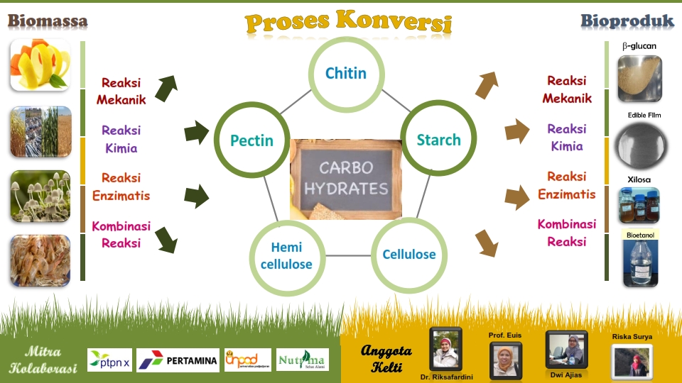 Kelompok penelitian konversi karbohidrat (RKK) merupakan kelompok penelitian yang bergerak di bidang penelitian dan pengembangan konversi polisakarida, baik yang berasal dari tumbuhan, hewan maupun mikroba, seperti pati, hemiselulosa, selulosa, pektin, agar, karaginan, alginat, dan kitin menjadi senyawa turunannya yang mempunyai niali tambah dan nilai ekonomi, baik untuk industri pangan, farmasi, kimia, tekstil maupun industri lain.