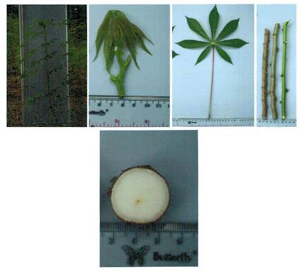 | Warna permukaan atas tangkai di batang bagian tengah | merah sepanjang tangkai daun |