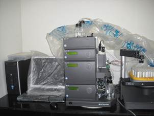 Peralatan ini menggunakan metode ionisasi ESI (Electrospray Ionisation). Sistem triple quadrupole yang ada pada Mass Spectrometry memungkinkan untuk melakukan targeted analysis dengan limit deteksi yang sangat rendah (ppb). Saat ini penggunaan alat lebih banyak untuk analisis pestisida, antibiotik, dan konfirmasi berat molekul senyawa murni atau semi murni hasil kromatografi kolom.