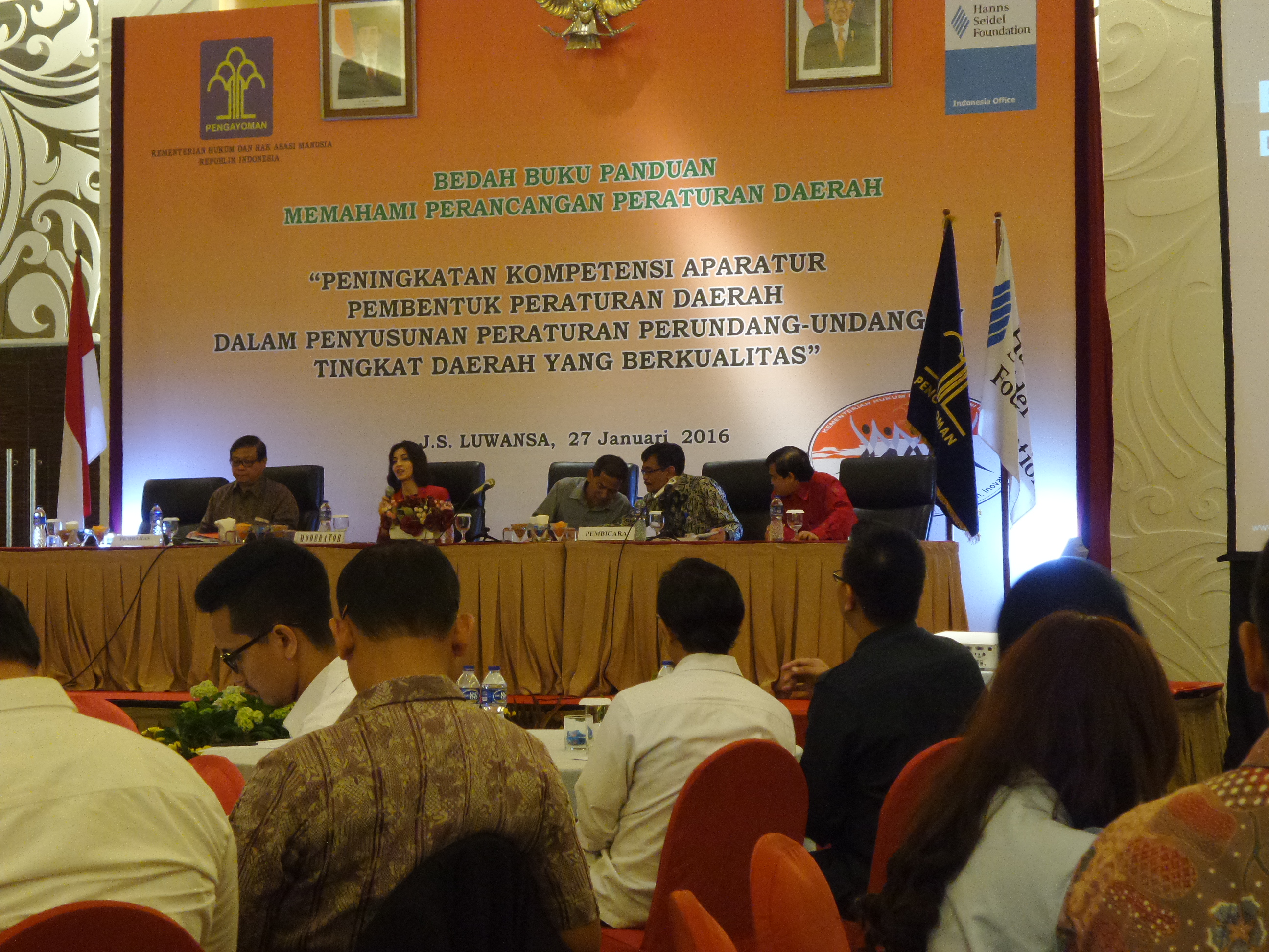 Direktorat Jenderal Peraturan Perundang-undangan bekerja sama dengan Hans Seidel Foundation, mengadakan kegiatan Bedah Buku Memahami Perancangan Peraturan, hari Rabu (27/1) di Hotel J.S. Luwansa, Rasuna Said Kuningan Jakarta, Kegiatan ini dilaksanakan berkaitan penyempurnaan Buku Panduan Memahami Perancangan Peraturan Daerah.