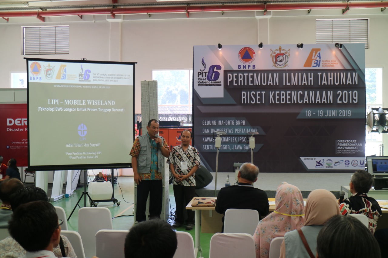 Dr. Ir. Adrin Tohari, M. Eng., A researcher at the LIPI Physics Research Center with Suryadi, ST, a researcher at the LIPI Geotechnology Research Center as an inventor, presented the Mobile Wiseland at the 2019 Disaster Research Annual Scientific Meeting organized by BNPB in Sentul Bogor on 18-19 June 2019 , where LIPI became the finalist of the disaster prepared innovation competition.