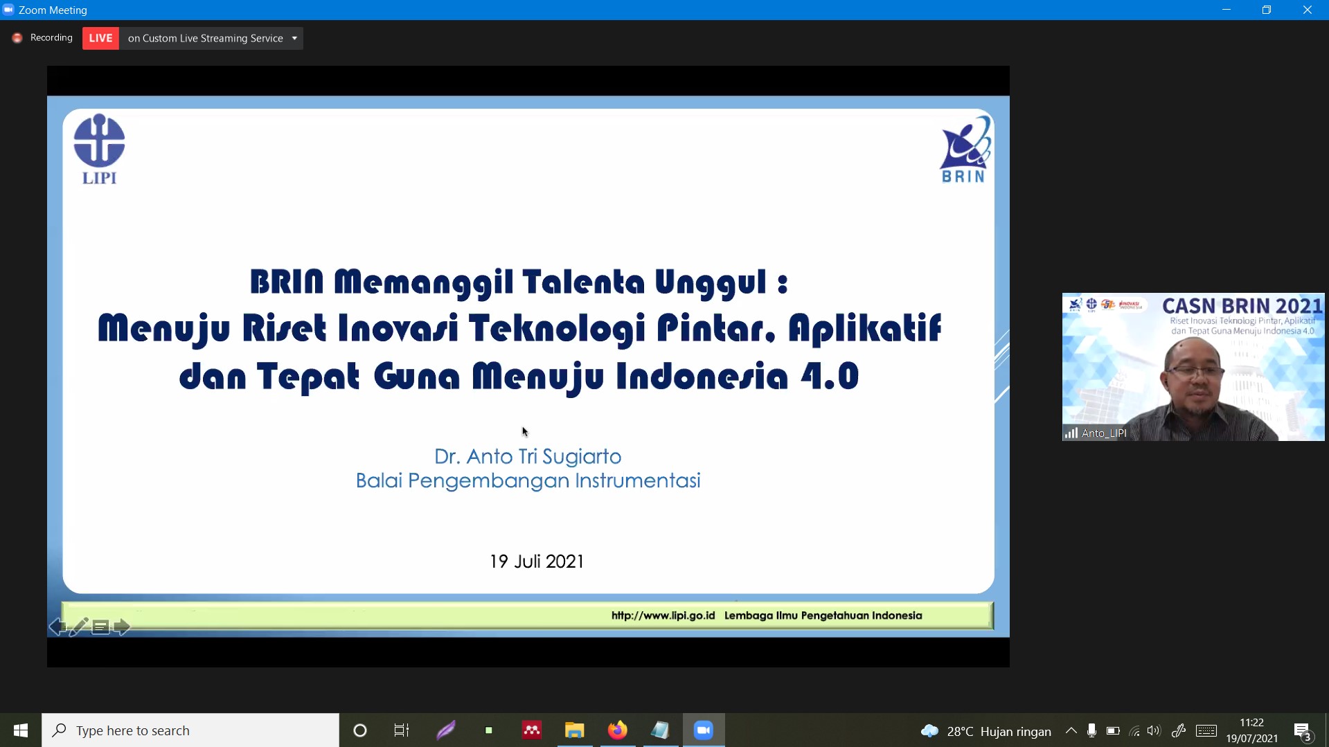 Sehubungan dengan hal tersebut Pusat Penelitian Teknologi Tepat Guna (P2TTG), Balai Penelitian Teknologi Bahan Alam (BPTBA) dan Balai Pengembangan Instrumentasi (BPI) akan menyelenggarakan Webinar dengan tema “CASN BRIN 2021: Riset Inovasi Teknologi Pintar, Aplikatif dan Tepat Guna Menuju Indonesia 4.0”, yang diselenggarakan pada Senin, 19 Juli 2021 melalui media zoom cloud meeting dan kanal youtube.