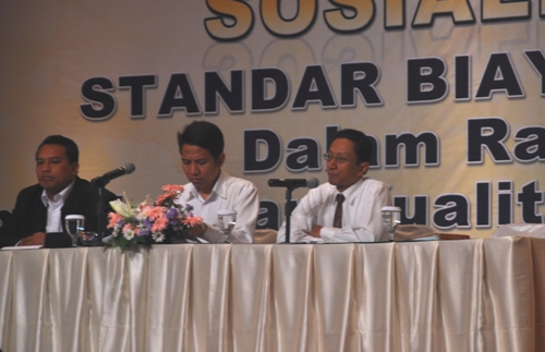 Sekretaris Ditjen Anggaran Mariatul Aini, dalam pembukaan acara ini menyampaikan,” Kebijakan-kebijakan yang disosialisasikan ini merupakan implementasi dari permormance base budgeting yang sudah dimulai beberapa tahun terakhir”. Dalam rangka penerapan performance base budgeting, saat ini diupayakan peningkatan kualitas informasi kinerja sedang diperbaiki dengan penyempurnaan pada Arsitektur dan Informasi Kinerja (ADIK). Terkait dengan standar biaya, diupayakan efisiensi sesuai standar struktur biaya, standar biaya masukan, dan standar biaya keluaran. “Peningkatan kualitas informasi kinerja saat ini sedang diperbaiki dengan penyempurnaan pada ADIK. Terhadap standar biaya juga dioptimalkan efisien sesuai standar struktur biaya disamping SBM, dan SBK”, imbuhnya.