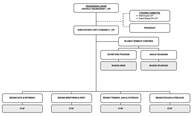 Struktur Organisasi CRITC/PIPTK nasional secara umum terdiri dari 4 bidang kerja, yaitu : Data & Informasi, Monitoring & Riset Agenda, Training, Jasa & Kerjasama , Edukasi & Publikasi