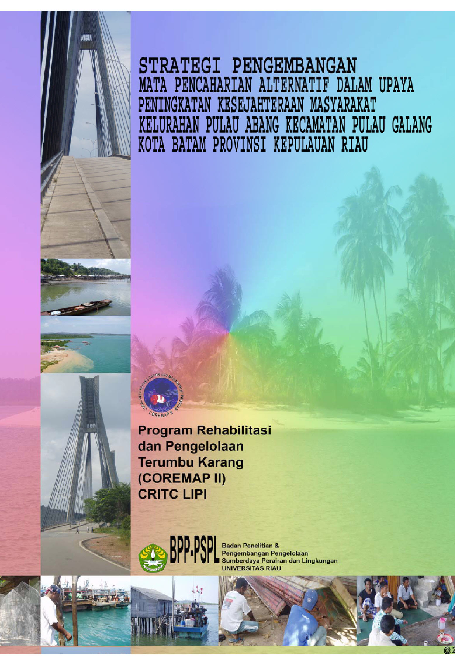 Untuk meningkatkan pendapatan nelayan yang sekaligus meningkatkan kesejahteraan keluarganya dari satu sisi dan mengurangi eksploitasi sumberdaya perikanan serta degradasi habiatnya khususnya terumbu karang di sisi lainnya, harus dikembangkan mata pencaharian alternatif bagi nelayan. Namun untuk mengembangkan usaha alternatif tersebut memerlukan strategi mengingat dari satu sisi sangat tidak mudah untuk memulai sesuatu usaha yang baru bagi masyarakat nelayan yang tingkat ketergantungannya sangat tinggi terhadap sumberdaya perikanan, sedangkan disisi lain suatu usaha yang baru bisanya juga rentan untuk bertahan. Strategi yang dimaksud antara lain: 1) Memilih usaha yang telah ada dilakukan oleh masyarakat di lokasi studi sehingga usaha tersebut paling tidak telah dikenal oleh masyarakat; 2) Memilih usaha disamping layak dikembangkan berdasarkan pertimbangan variabel teknis, juga layak secara finansial, dimana hal ini diperkirakan suatu tolok ukur dari pada keberlangsungan atau kontinuitas komoditi yang dihasilkan dari suatu usaha yang akan dikembangkan; 3) Menentukan strategi pengembangannya berdasarkan pertimbangan faktor internal dan eksternalnya yang merupakan langkah konkrit yang perlu dilakukan disamping untuk mewujudkan usaha-usaha tersebut, juga berkaitan dengan keberlangsungan dan pengembangannya. Untuk itu perlu dilakukan suatu studi yang secara umum untuk mengetahui strategi pengembangan usaha alternatif di lokasi studi. Sedangkan secara khusus bertujuan untuk mengetahui : jenis-jenis mata pencaharian alternatif yang ada di Kelurahan Pulau Abang; jenis mata pencaharian yang layak dikembangkan berdasarkan pertimbangan variabel teknis dan kelayakan finansial usaha dan strategi pengembangan usaha alternatif berdasarkan pertimbangan faktor internal dan eksternalnya.
