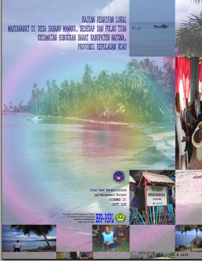 Pengidentifikasian kearifan lokal masyarakat nelayan harus lebih difokuskan pada permasalahan dalam sistem mata pencaharian hidup yang memiliki isu global dan sekaligus mempunyai pengaruh yang sangat besar bagi keberlangsungan hidup masyarakat lokal. Daerah-daerah yang memiliki potensi terumbu karang besar seperti Kawasan Pulau tiga di Kabupaten Natuna sangat tepat menjadi fokus perhatian pengkajian ini. Penyelamatan terumbu karang saat ini menjadi isu lingkungan yang hangat dalam tataran masyarakat internasional dan memiliki korelasi yang signifikan dengan sumbermata pencaharian masyarakat setempat. Untuk itu telah dilaksanakan penelitian yang bertujuan untuk Mengkaji dimensi sosial dan budaya dari kearifan lokal masyarakat di Kawasan Pulau Tiga dalam pemanfaatan dan pengelolaan sumberdaya laut, mengidentifikasi kearifan lokal apa saja yang pernah dijalankan dan yang masih berlangsung dalam kehidupan masyarakat di Kawasan Pulau Tiga, dalam pemanfaatan dan pengelolaan sumberdaya laut hingga saat ini, mengkaji jenis-jenis kearifan lokal yang dapat menunjang penyelamatan ekosistem terumbu karang, mengkaji kemungkinan untuk menggeser atau meningkatkan status kearifan lokal masyarakat dari hukum normatif menjadi hukum legal formal (peraturan desa). mendesain pengelolaan dan pemanfaatan sumberdaya yang terkandung di dalam ekosistem terumbu karang, yang bersumber dan berakar dari kearifan lokal masyarakat di Kawasan Pulau Tiga, menginisiasi lahirnya kearifan lokal baru untuk penyelamatan ekosistem terumbu karang.