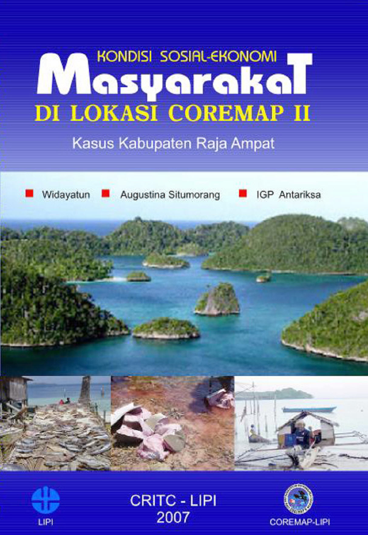 Studi yang dilakukan di dua distrik lokasi Coremap II: Distrik Waigeo Selatan dan Waigeo Barat, Kabupaten Raja Ampat ini, bertujuan untuk mengumpulkan dan menganalisa data dasar mengenai kondisi sosial, ekonomi dan budaya masyarakat setempat berkaitan dengan pemanfaatan sumber daya laut, khususnya terumbu karang. Hasil studi diharapkan dapat dipakai sebagai masukan-masukan dalam merancang, melaksanakan dan memantau program COREMAP. Di samping itu, hasil studi ini juga merupakan titik awal (T0) yang menggambarkan kondisi sosial-ekonomi masyarakat sebelum program/intervensi Coremap dilakukan.