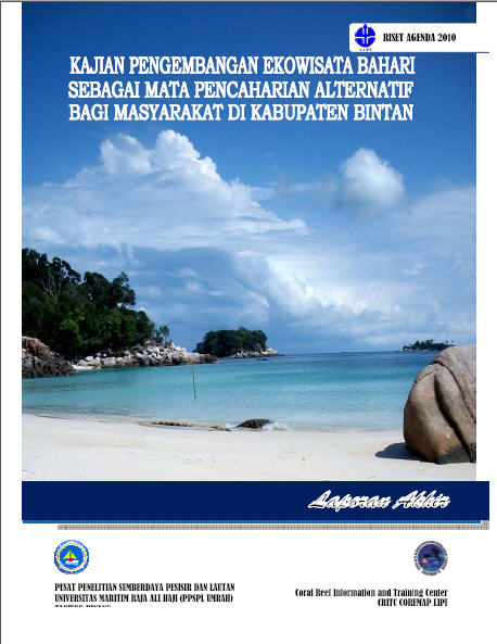 Oleh karena itu, penelitian ini dimaksudkan untuk melakukan kajian potensi ekowisata bahari yang dapat dikembangkan di Kabupaten Bintan dan menjadikannya sebagai nilai tambah ekonomi masyarakat melalui Mata Pencaharian Alternatif (MPA), sekaligus menjadi bagian upaya pelestarian sumberdaya pesisir dan lautan.