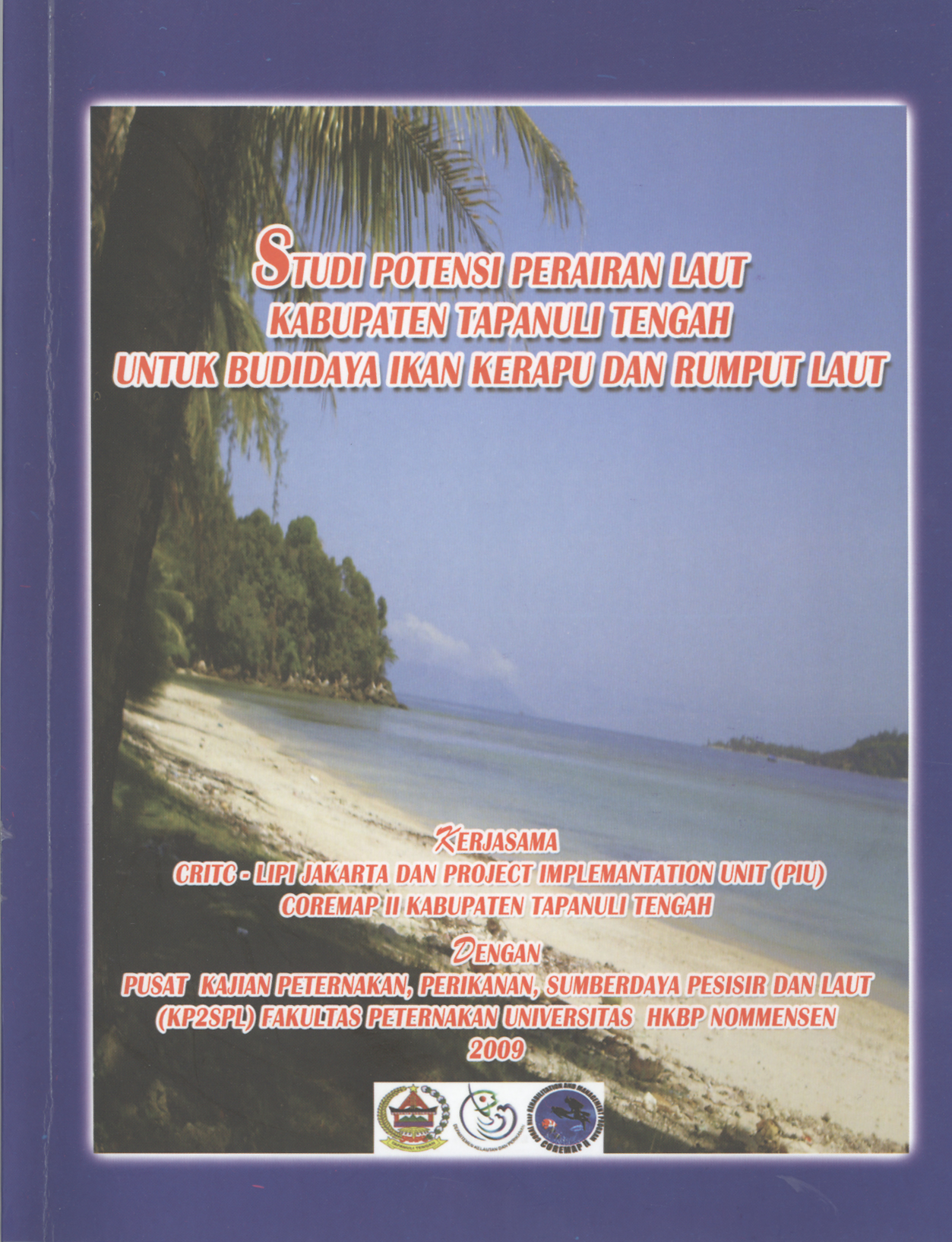 Studi potensi perairan laut Kecamatan Badiri, Tapian Nauli dan Andam Dewi, Kabupaten Tapanuli Tengah untuk budidaya rumput laut dan ikan kerapu atas kerja sama antara CRITCûLIPI Jakarta dan Project Implementation Unit (PIU) COREMAP II KABUPATEN TAPANULI TENGAH dengan Pusat Kajian Peternakan, Perikanan, Sumber Daya Pesisir dan Laut (PKP2SPL), Fakultas Peternakan Universitas HKBP Nommensen yang didanai oleh ADB melalui bantuan nomor 1962 -1NO, Kategori 03.