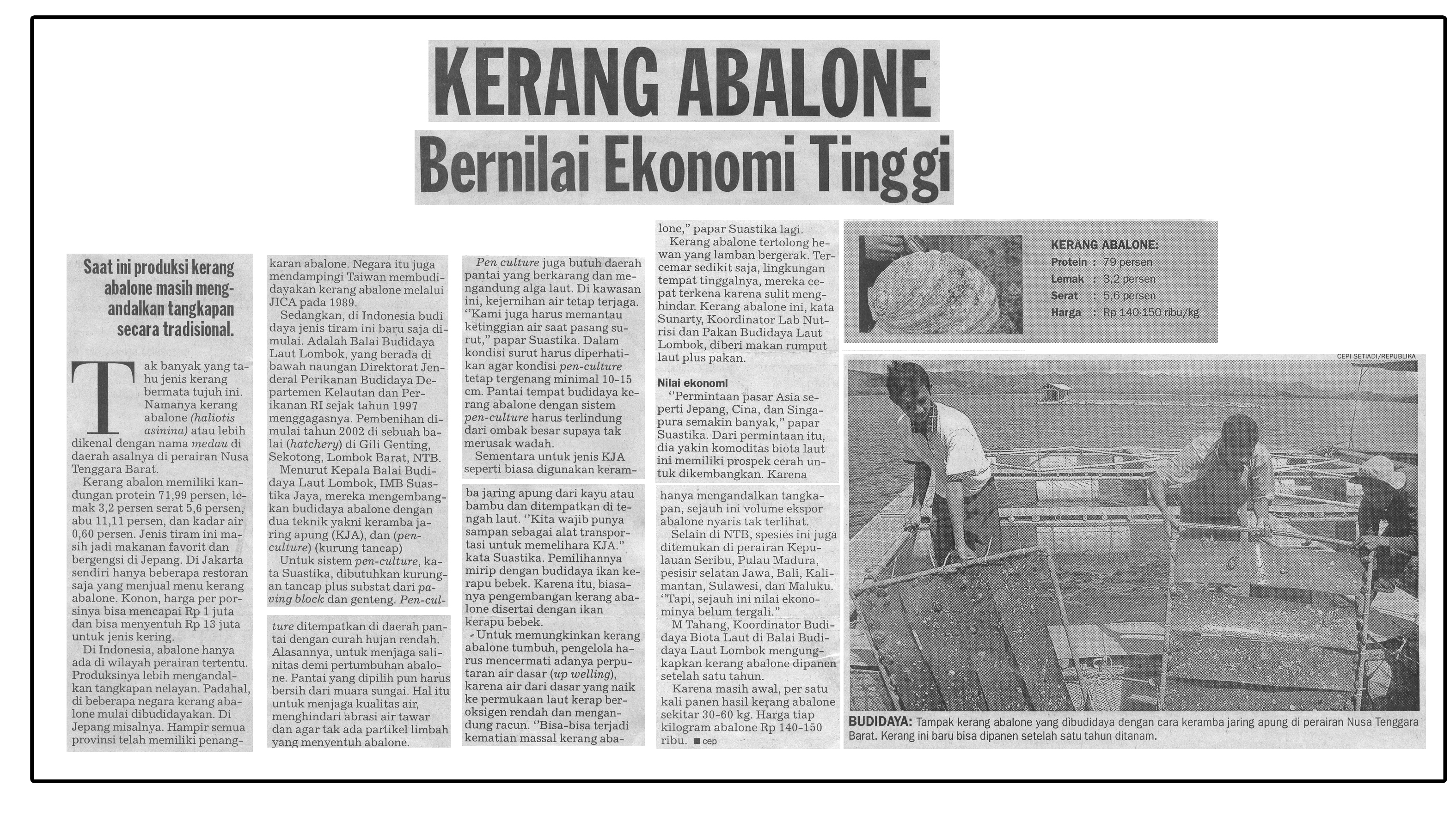 2009 - Studi Potensi Pengembangan Budidaya Laut di Lokasi Coremap II Kabupaten Lingga