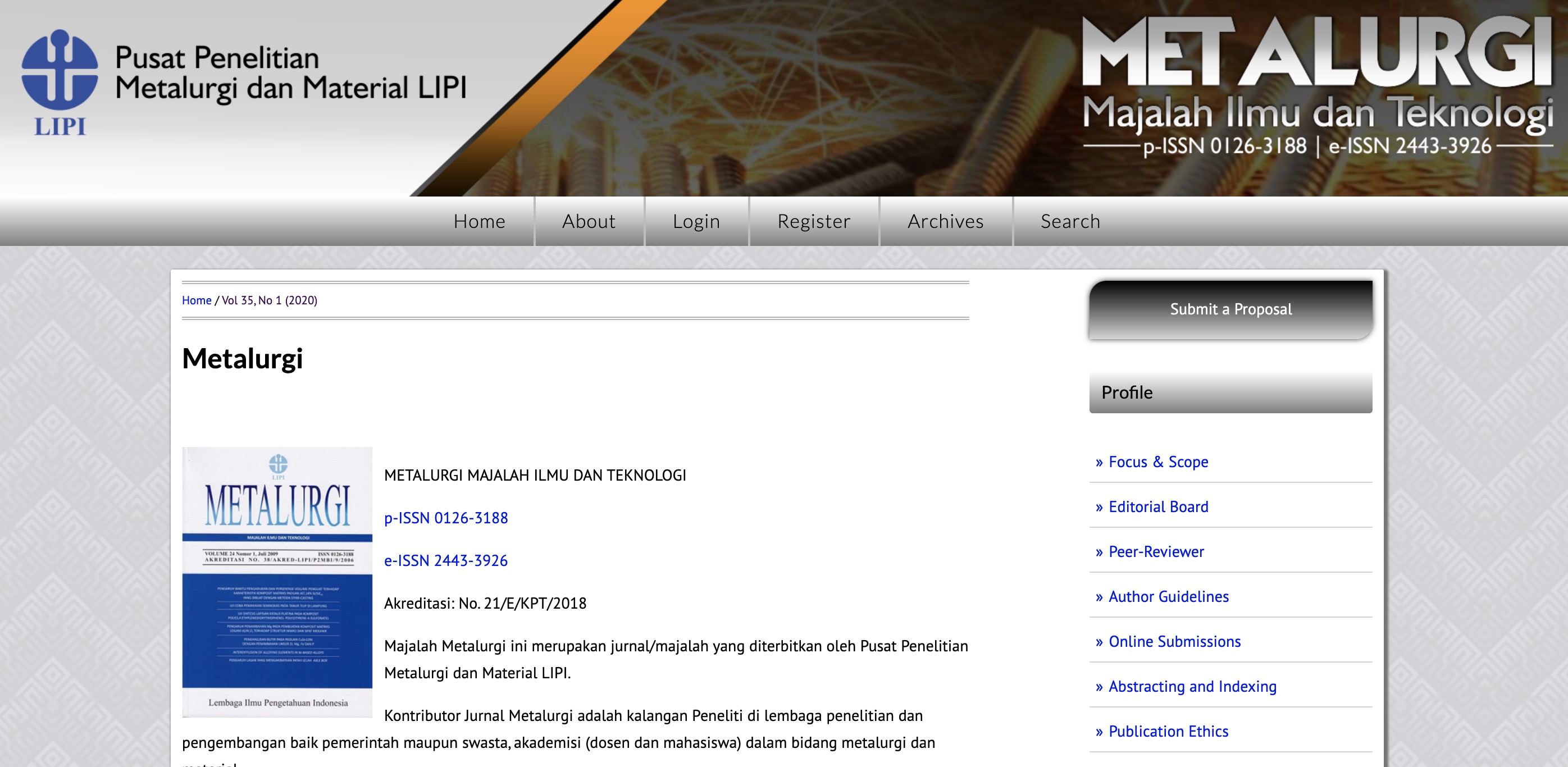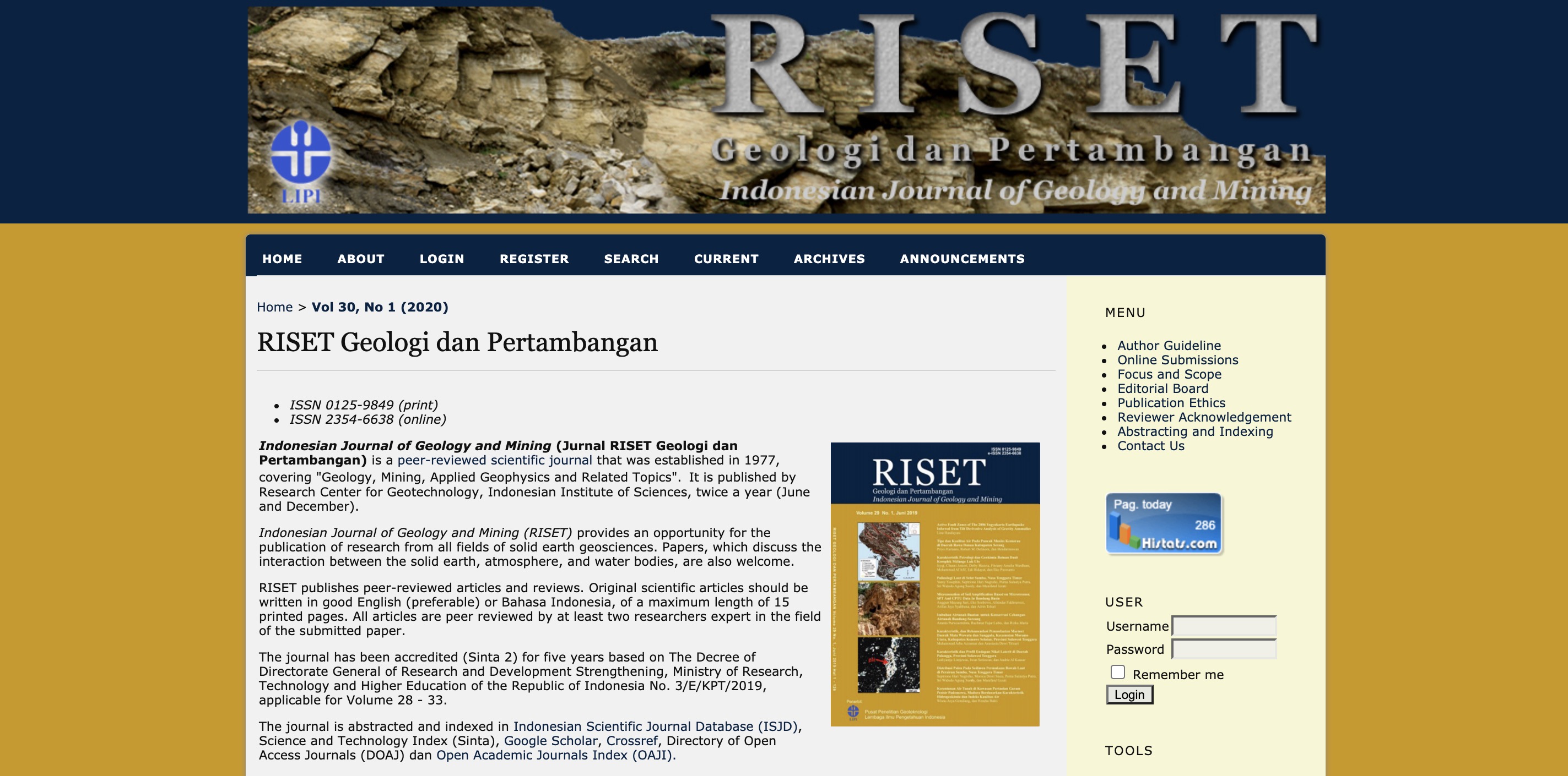 Indonesian Journal of Geology and Mining (Jurnal RISET Geologi dan Pertambangan) is a peer-reviewed scientific journal that was established in 1977, covering "Geology, Mining, Applied Geophysics and Related Topics".