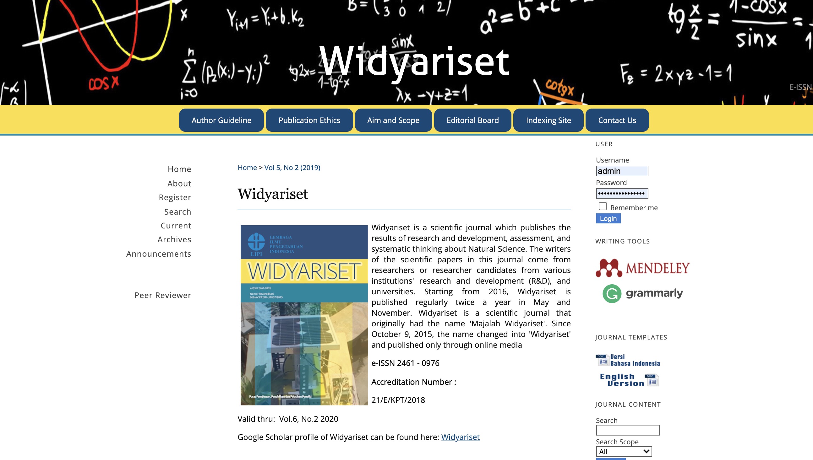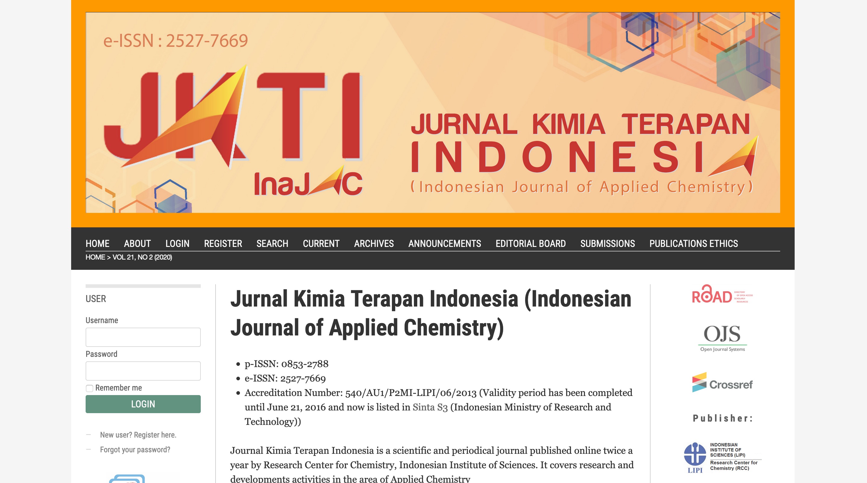 scientific and periodical journal published online twice a year by Research Center for Chemistry, Indonesian Institute of Sciences. It covers research and developments activities in the area of Applied Chemistry.