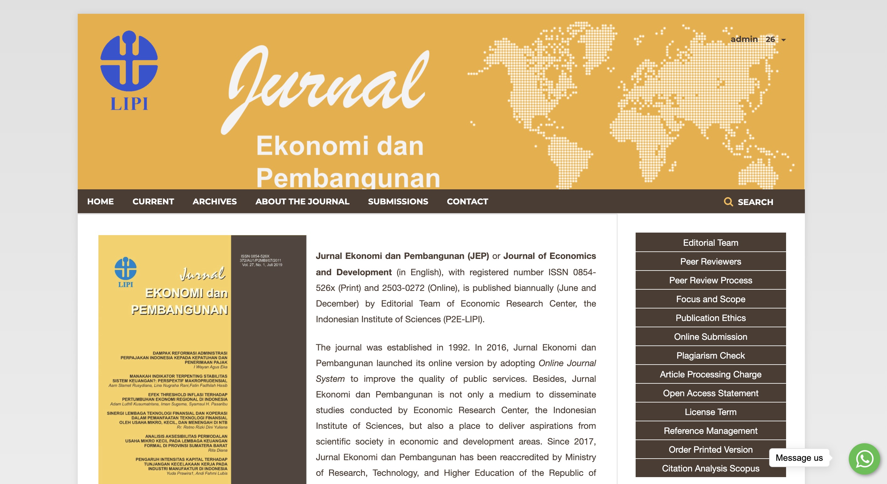 Jurnal Ekonomi dan Pembangunan is to disseminate studies conducted by Economic Research Center, the Indonesian Institute of Sciences, but also a place to deliver aspirations from scientific society in economic and development areas