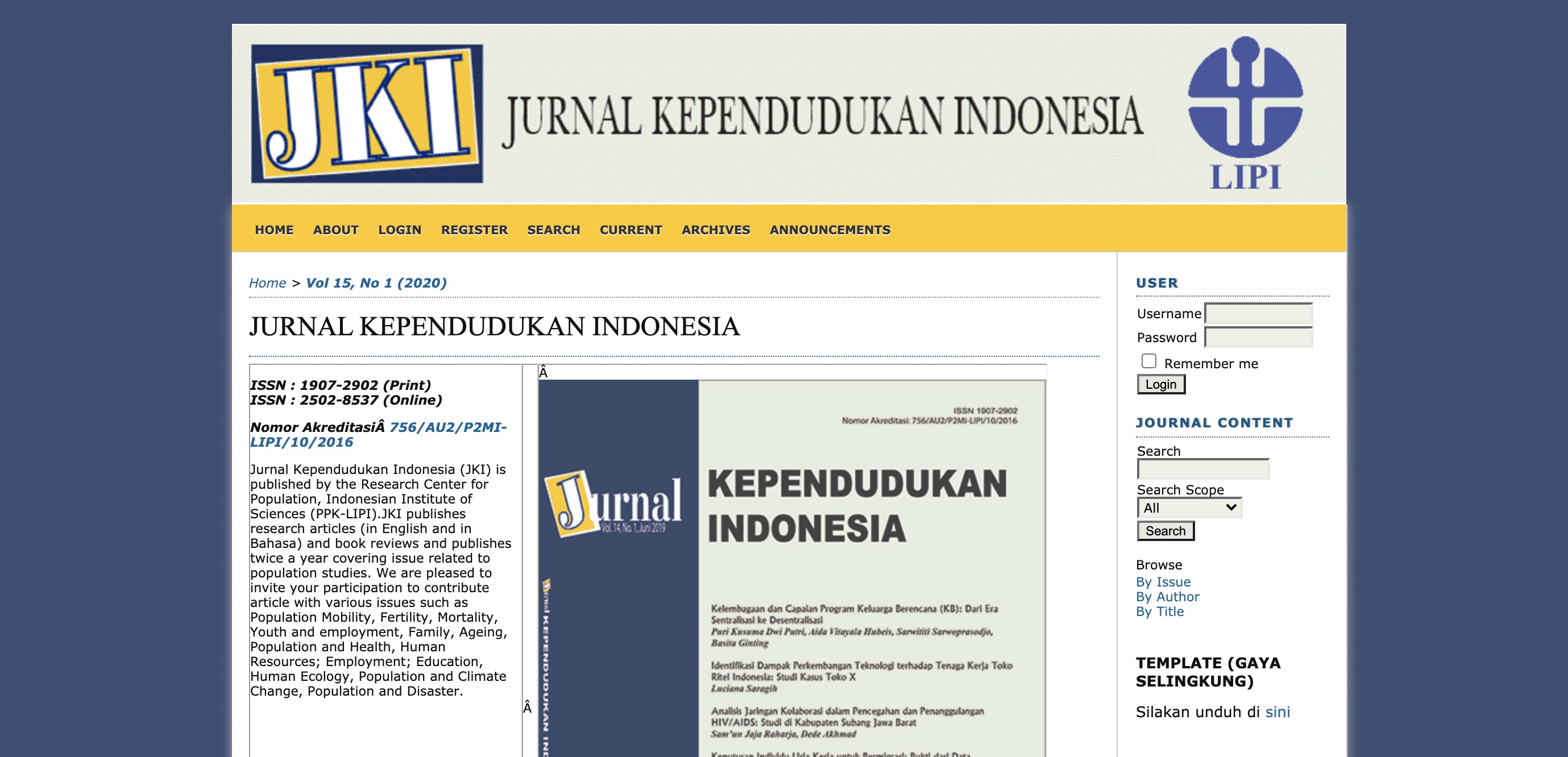 JKI publishes research articles (in English and in Bahasa) and book reviews and publishes twice a year covering issue related to population studies