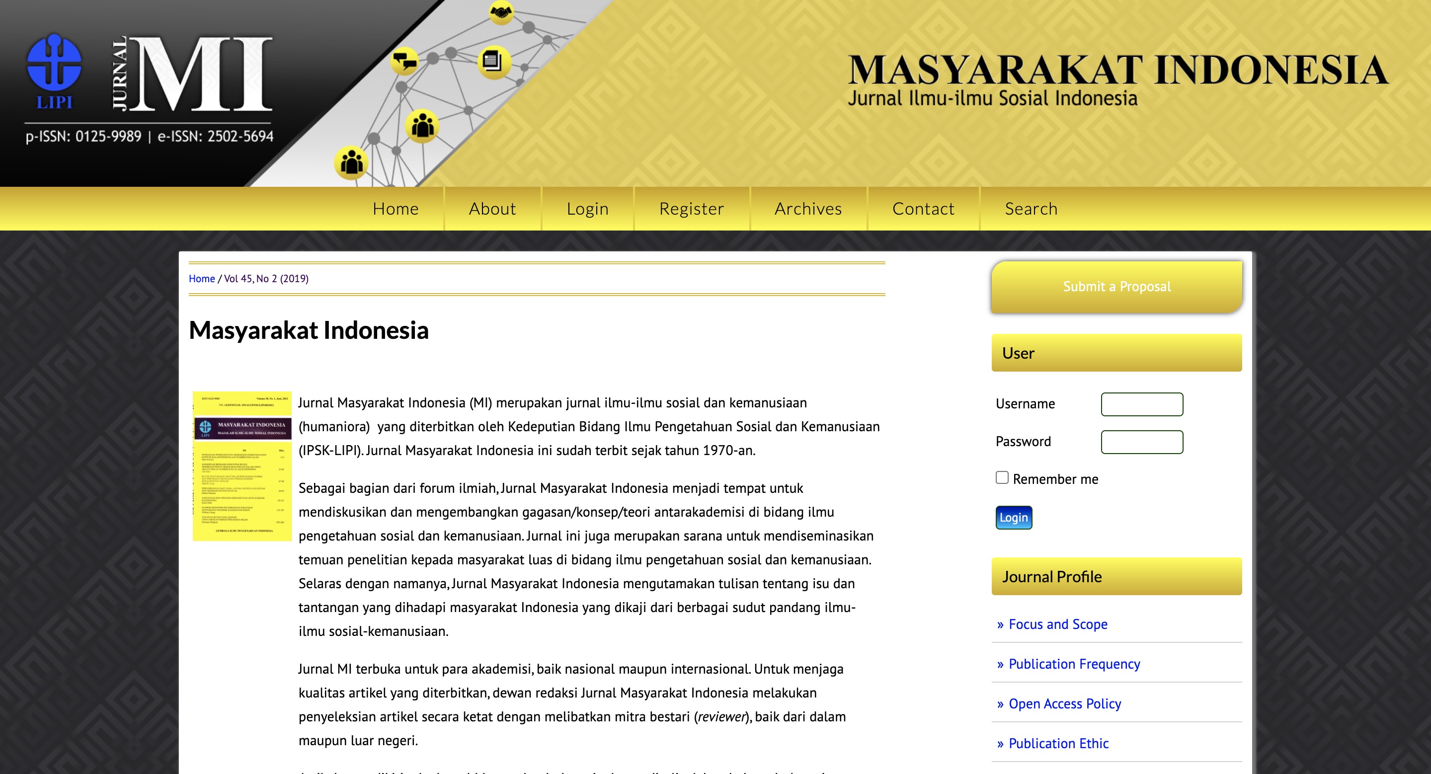 Masyarakat indonesia merupakan jurnal yang menjadi sarana untuk mendiseminasikan temuan penelitian kepada masyarakat luas di bidang ilmu pengetahuan sosial dan kemanusiaan