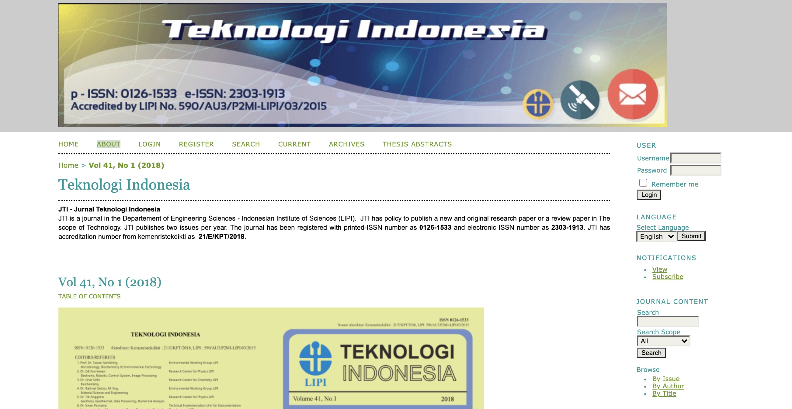 journal in the Departement of Engineering Sciences - Indonesian Institute of Sciences (LIPI). JTI has policy to publish a new and original research paper or a review paper in The scope of Technology