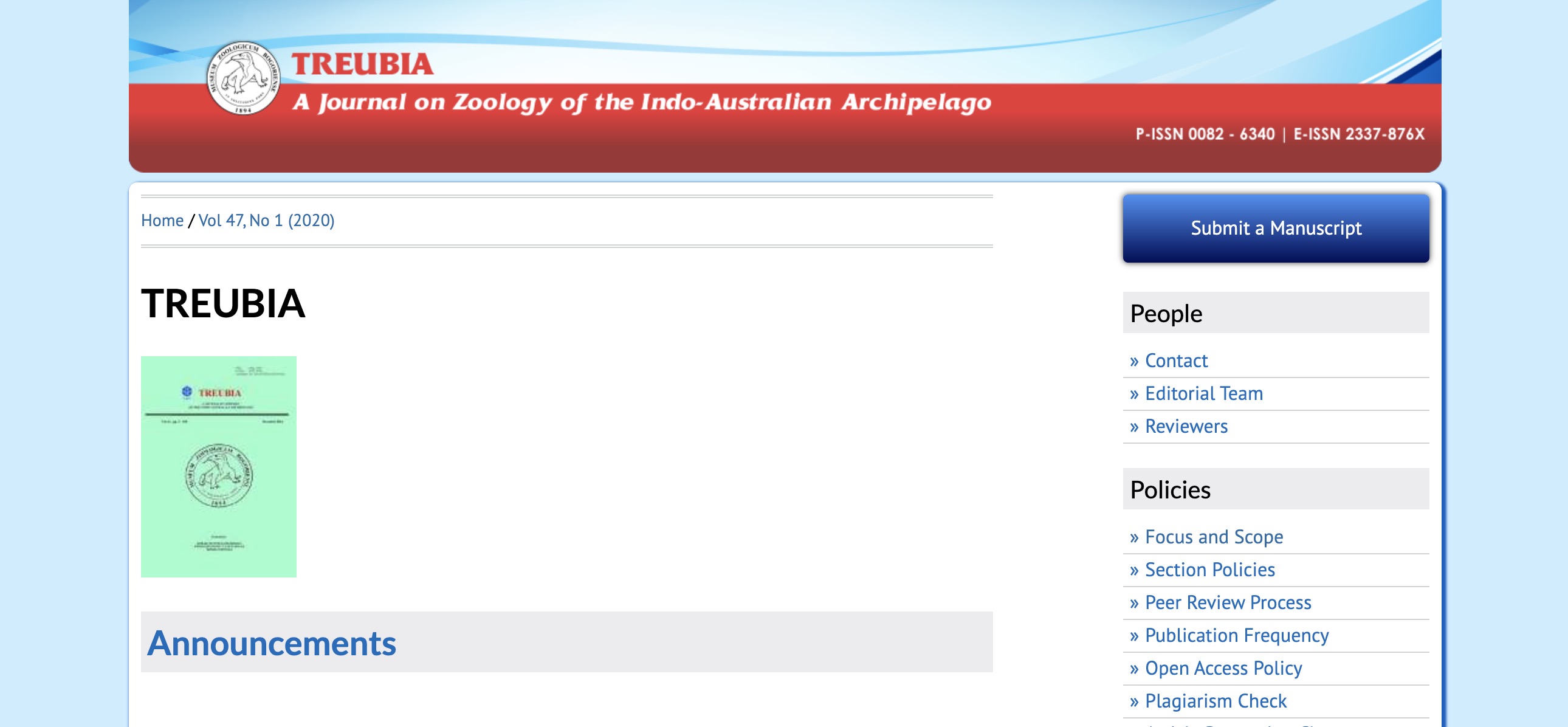 TREUBIA is a peer-reviewed, scientific zoological journal with focus on biosystematic, ecological, and conservation aspects of terrestrial and aquatic fauna in the Indo-Australian region