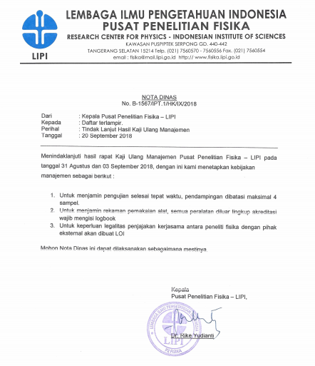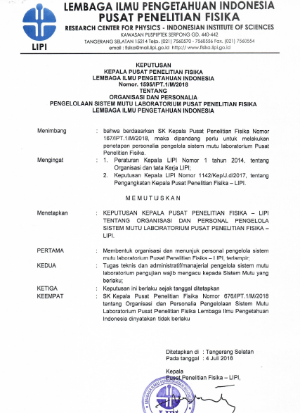 Keputusan Kepala Pusat Penelitian Fisika LIPI Tentang Organisasi dan Personalia Pengelolaan Sistem Mutu Lab P2 Fisika LIPI