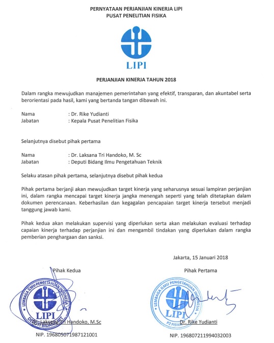 Laporan Kinerja Triwulan II Pusat Penelitian Fisika LIPI