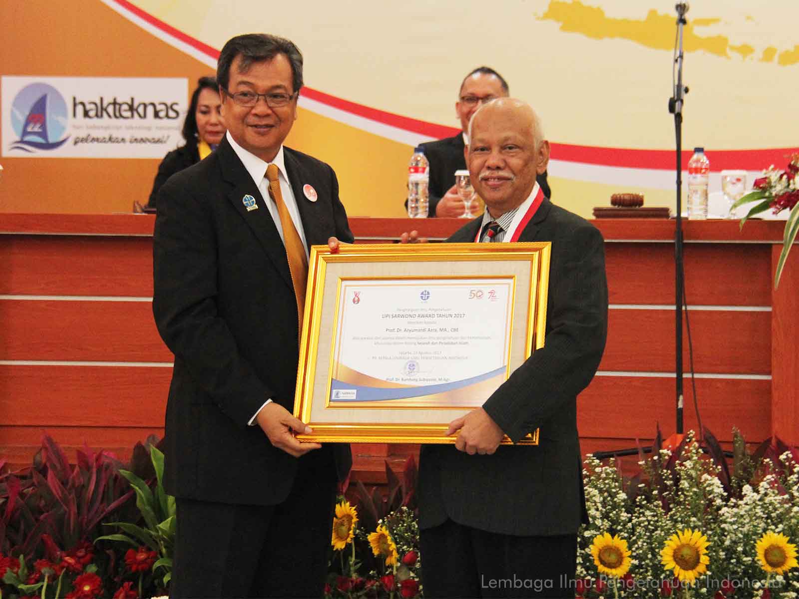 Lembaga Ilmu Pengetahuan Indonesia (LIPI) genap berusia 50 tahun pada 23 Agustus 2017. Untuk memperingati usia emas ini, LIPI menggelar perhelatan akbar sebagai puncak peringatan yakni penganugerahan LIPI Sarwono Award dan Sarwono Prawirohardjo Memorial Lecture (SML) Tahun 2017. Penerima anugerah LIPI Sarwono Award pada tahun ini adalah Prof. Dr. Azyumardi Azra, MA, CBE yang merupakan Guru Besar Sejarah dan Peradaban Islam, Fakultas Adab UIN Syarif Hidayatullah Jakarta. Sementara untuk penyelenggaraan SML kali ini memberikan tempat terhormat bagi Menteri Perencanaan Pembangunan Nasional (PPN)/Kepala Badan Perencanaan Pembangunan Nasional (Bappenas), Prof. Dr. Bambang P. Soemantri Brodjonegoro untuk memberikan orasi ilmiah. Orasi ilmiah yang disampaikan berjudul “Arah Kebijakan Pembangunan Ilmu Pengetahuan dan Teknologi untuk Meningkatkan Daya Saing Bangsa”.