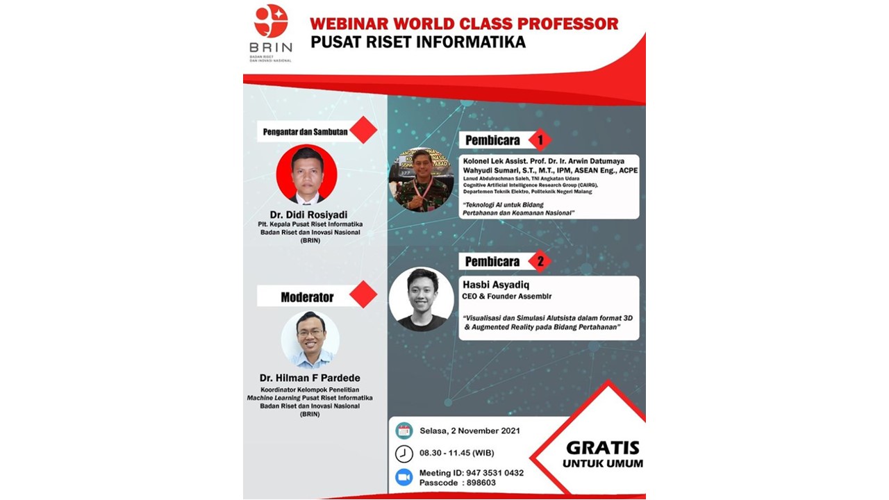 Bandung, November 2021. Semakin pesatnya perkembangan ilmu pengetahuan dan teknologi informatika maka sivitas Pusat Riset Informatika harus bisa mengikuti perkembangan tersebut, khususnya dalam hal penelitian dan pengembangan ilmu pengetahuan informatika.… Read More →