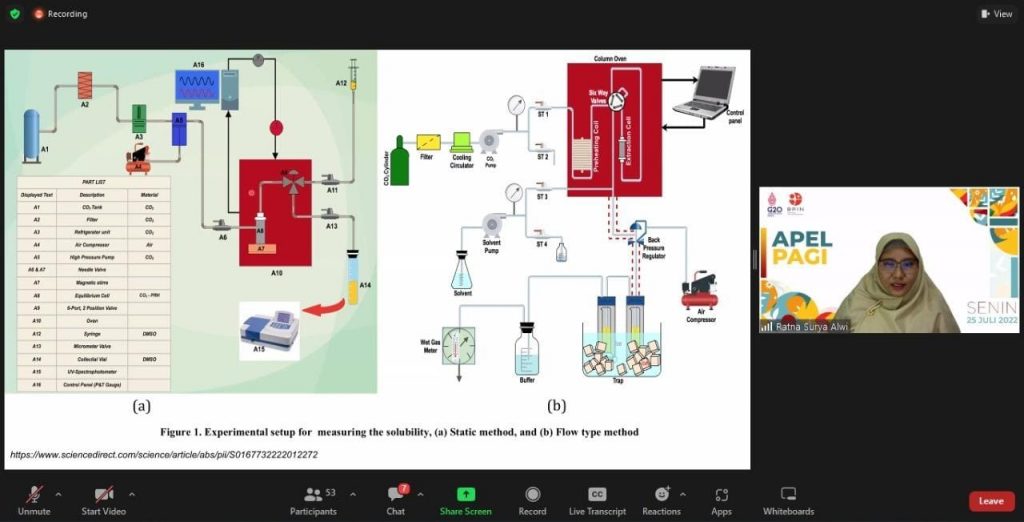 Pada kesempatan yang sama Peneliti PRK BRIN Ratna Surya Alwi, S.T., M.Si., Ph.D. menerangkan tentang model termodinamika untuk kelarutan zat padat dalam karbondioksida superkritis. “Kesadaran akan perubahan iklim dan urgensi tindakan penanganan masalah lingkungan semakin meluas di seluruh dunia. Salah satu cara yang diperlukan untuk mencapai tujuan perubahan iklim adalah carbon capture, utilization, and storage (CCUS),” jelasnya.