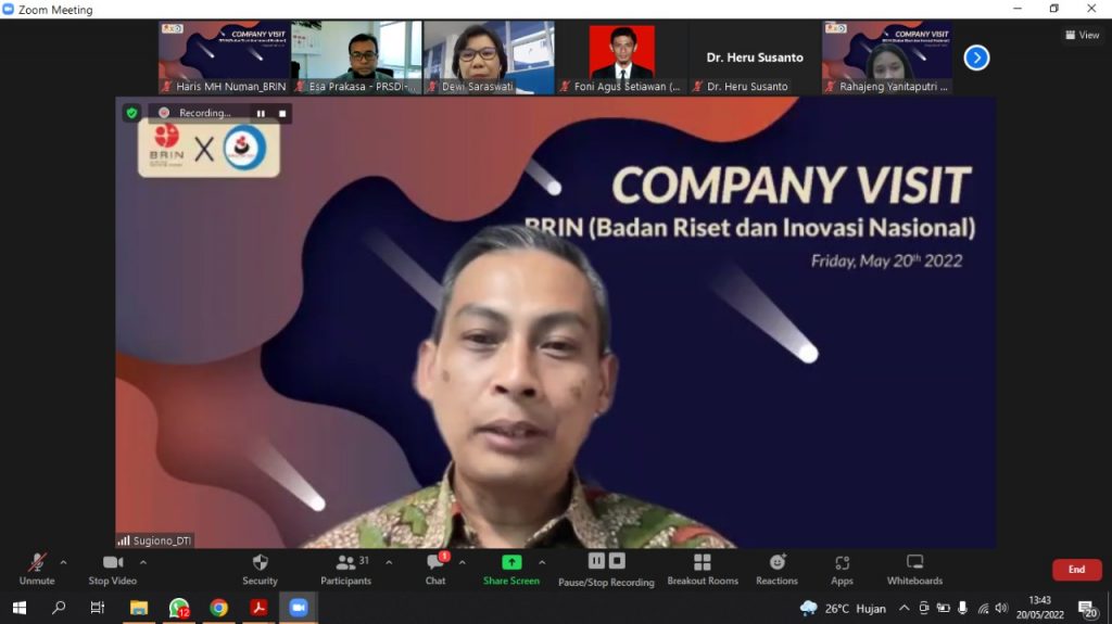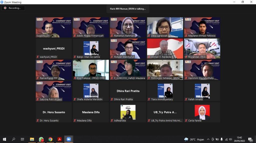 Bandung, Humas BRIN. Badan Riset dan Inovasi Nasional (BRIN) melalui Pusat Riset Sains Data dan Informasi, Organisasi Riset Elektronika dan Informatika menerima kunjungan Company Visit dari Fakultas Teknik Jurusan Teknik Industri Universitas Brawijaya secara daring pada Kamis (20/5).