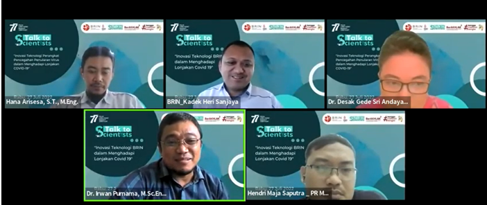 Bandung – Humas BRIN. Badan Riset dan Inovasi Nasional melalui Pusat Riset Mekatronika Cerdas, turut dalam inovasi teknologi dalam pencegahan penularan virus ditengah lonjakan covid 19. Dalam Talk To Scientists pada Rabu (27/06) disampaikan terkait dengan Sistem Desinfeksi & Sterilisasi dengan sinar UVC untuk pesawat udara dan Robot Otonom Multiguna 2020 (ROM20), yang merupakan teknologi dikembangkan dan dipaparkan oleh narasumber dari Pusat Riset Mekatronika Cerdas.