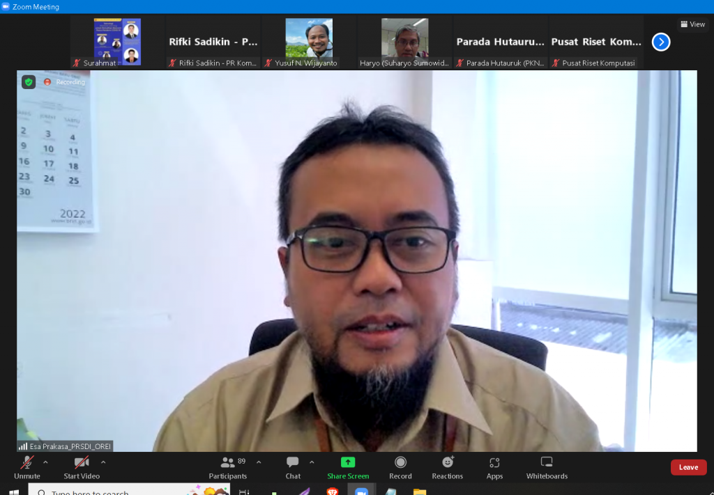 Membuka webinar Kepala Organisasi Riset Elektronika dan Informatika Budi Prawara mengatakan kolaborasi BRIN dalam proyek ALICE telah berlangsung sejak 2014 sebagai salah satu upaya meningkatkan kapasitas periset-periset LIPI pada saat itu. Para kolaborator seperti Pak Esa Prakasa diharapkan bisa membagikan ilmu dan mengembangkannya di Indonesia. “Contohnya Riset yang dikembangkan oleh tim pak Esa untuk identifikasi berbagai jenis kayu di Indonesia, riset tersebut bahkan sudah digunakan oleh para pemangku kepentingan seperti Kementerian Kehutanan,” tuturnya.