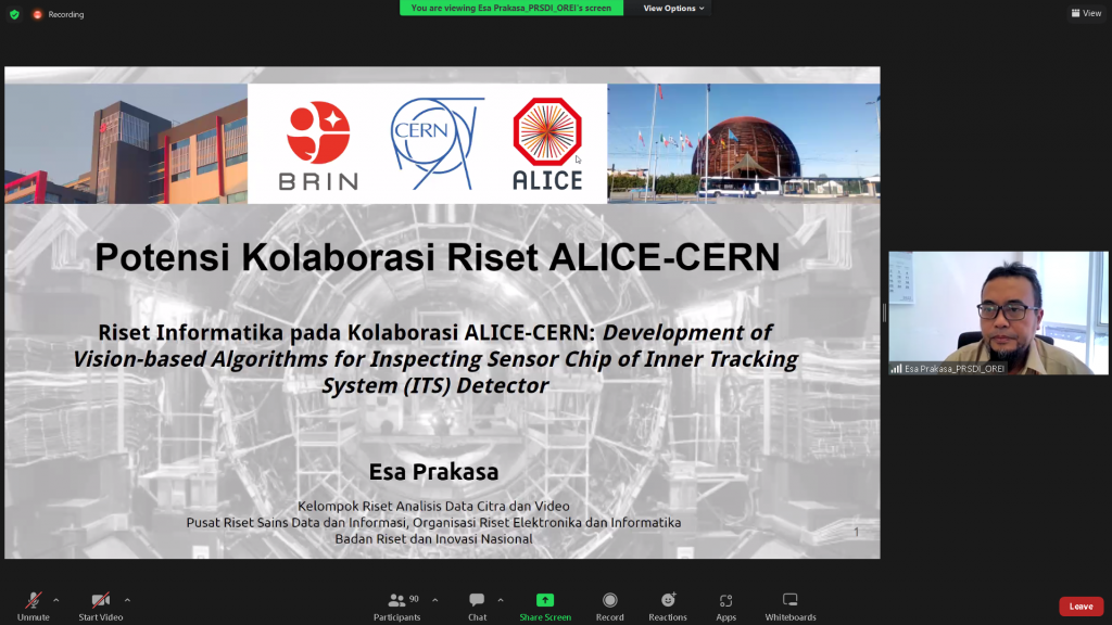 Humas Bandung -BRIN. Kiprah para peneliti BRIN dalam proyek ALICE sudah terjalin sejak Tahun 2014. Para peneliti BRIN yang sebelumnya tergabung dalam LIPI menjadi bagian penting dalam pembangunan A Large Ion Collider Experiment (ALICE) di Jenewa, Swiss. Salah satunya dalam proses pengembangan algoritma berbasis vision untuk pemeriksaan chip sensor ITS; development of vision-based algorithms for inspecting sensor chip of inner tracking system (ITS) detector. Hal ini disampaikan Kepala Pusat Riset Sains Data dan Informasi Esa Prakasa, pada Selasa (21/6/2022) secara daring via zoom.