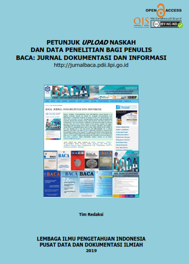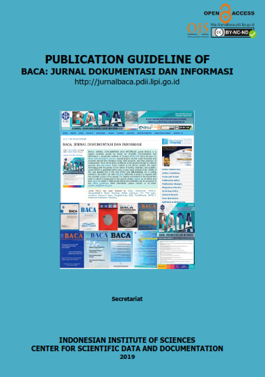 | BACA: JURNAL DOKUMENTASI DAN INFORMASI (Jurnal BACA) is a scientific journal in the documentation, information, and library subject that is published consistently by Center for Scientific Data and Documentation - Indonesian Institute of Sciences (PDDI LIPI). The publishing purpose is to provide up-to-date and quality information to readers who have an interest in science and technology development in these topics. Every article published in Jurnal BACA is the results of research activities, literature review, best practice, and brief communication. Jurnal BACA is published twice a year, precisely in June and December. The number of articles for each issue is at least five articles. As a reference for submitting manuscripts, the author can refer to ODLIS to determine the list of terms related to the scope and focus of journal. On July 9, 2018, Jurnal BACA was recognized as a nationally accredited scientific journal (SINTA 2) based on the "Surat Keputusan Direktur Jenderal Penguatan Riset dan Pengembangan Kementerian Riset, Teknologi, dan Pendidikan Tinggi Republik Indonesia Nomor 21/E/Kpt/2018 Tentang Peringkat Akreditasi Jurnal Ilmiah Periode I Tahun 2018", For the author and reader who want to submit a manuscript to this journal, please register as an author and then log in to submit it. Tha author guidelines can be accessed in the author guideline. For more information, please contact the secretariat at email: redaksi.baca@mail.lipindonesia.com. Jurnal BACA has been indexed by DOAJ, Dimensions, EBSCO, Sherpa/RoMEO, BASE, WorldCat, ROAD, CiteFactor, EZ3, PKP Index, Academic Resource Index, GoogleScholar, ISJD, PortalGaruda, SINTA 2, Indonesia OneSearch, Mendeley, OrcidID, LoopID, RINDataverse. |