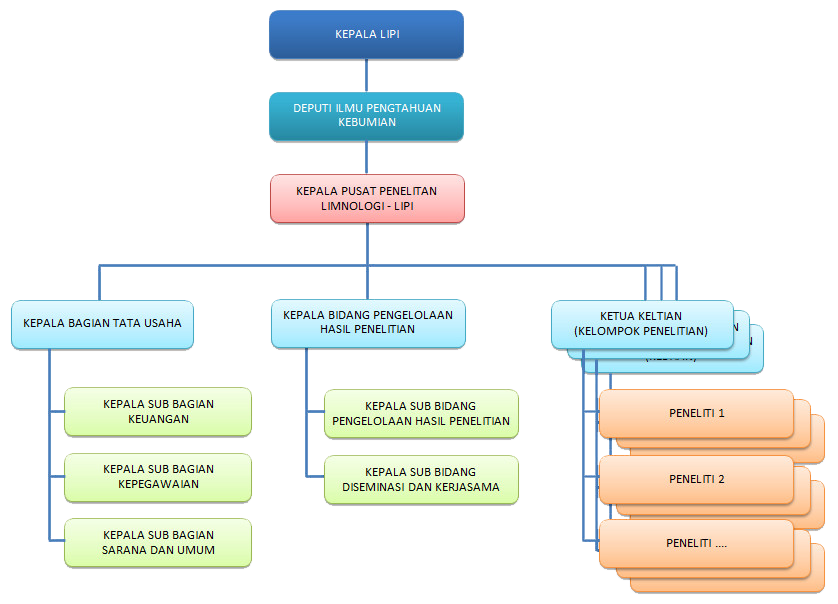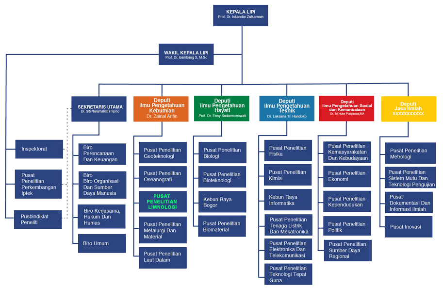 Berikut ini gambar struktur organisasi LIPI dan Pusat Penelitian Limnologi.
