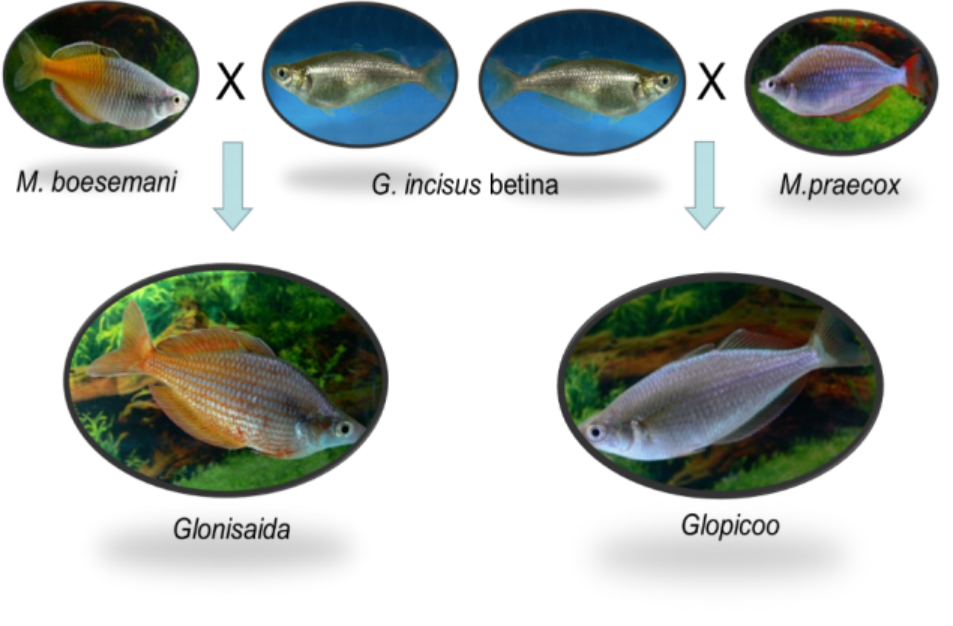 Contoh Kombinasi pasangan induk ikan pelangi dan hibrida terpilih (Sumber: D.S.