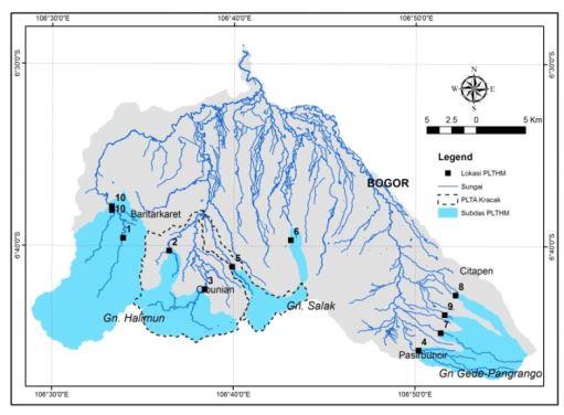 Lokasi potensi PLTMH di DAS Cisadane Hulu (Ridwansyah dkk., 2015).