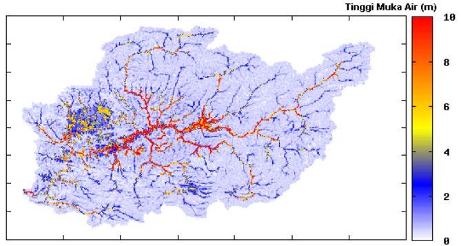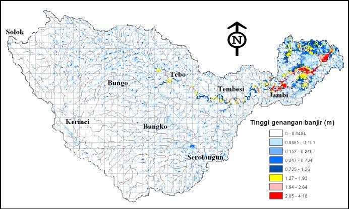 tinggi air maksimum hasil simulasi kejadian banjir di DAS Batanghari, yang terjadi