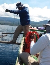 Aktifitas pengukuran kualitas air (Gambar kiri) dan pola arus (Gambar kanan).