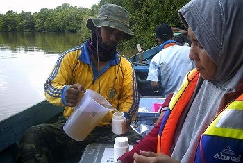 Pengukuran kualitas air dan pengambilan sampel air danau