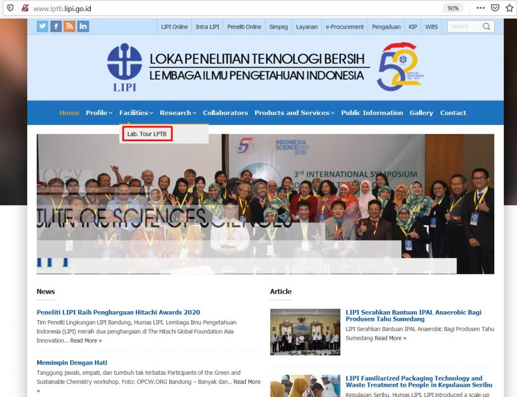 Bandung, Humas LIPI. Perkembangan teknologi informasi telah mendorong kreavitas visual dalam banyak bentuk dan format. Salah satunya adalah tur yang berlangsung secara virtual. Tanpa perlu hadir secara fisik, orang – orang dapat menikmati pemandangan atau suasana di suatu tempat secara digital. Mengusung konsep tersebut, Loka Penelitian Teknologi Bersih LIPI meluncurkan tur virtual yang menghadirkan seluk beluk laboratorium yang ada di Gedung 50 Kawasan Multisatker LIPI Bandung lokasi dimana LPTB LIPI berada.