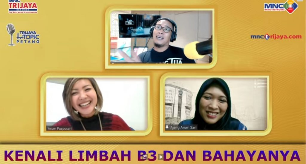 “Hot Topic Petang” MNC Trijaya Network dengan tema “Kenali Limbah B3 dan Bahayanya” menghadirkan peneliti sekaligus Kepala LPTB LIPI Dr. Ajeng Arum Sari dan Manajer Humas Prasadha Pamunah Limbah Industri (PPLI) Arum Pusposari, pada Jumat (21/5) secara Live melalui kanal zoom. Ajeng menjelaskan bahwa limbah B3 merupakan zat sisa usaha atau kegiatan yang bisa mencemarkan lingkungan dan membahayakan kesehatan. Limbah B3 ini diklasifikasikan dalam beberapa kategori seperti mudah meledak, korosi, bersifat iritasi, mutagenic, dan sebagainya. “Kalau dari sumbernya kita bagi menjadi tiga yaitu limbah dari inti proses industri, sampingan dan sumber lain,” paparnya.