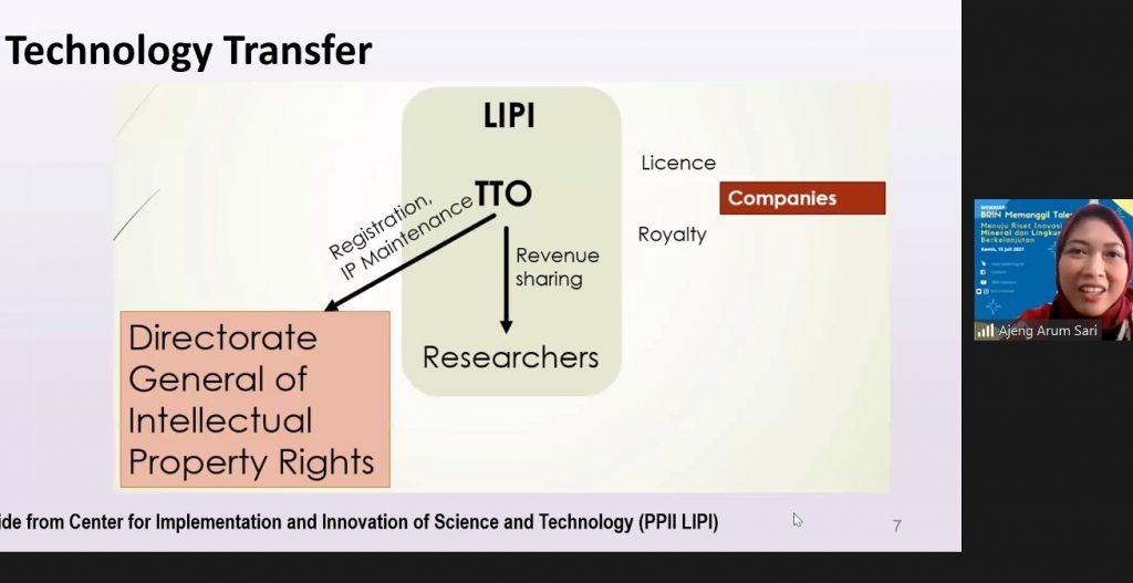 Webinar ini bertujuan untuk memperkenalkan BRIN/LIPI dan program seleksi CASN peneliti bagi mereka yang memiliki kualifikasi doktoral pada berbagai disiplin ilmu yang tersedia. Dua satuan kerja LIPI yang berpartisipasi pada webinar ini adalah Loka Penelitian Teknologi Bersih (LPTB) LIPI dan Balai Penelitian Teknologi Mineral (BPTM) LIPI. Masing-masing kepala satuan kerja; Dr. Ajeng Arum Sari-LPTB LIPI dan Dr. Eng. Widi Astuti membeberkan profil, keunggulan, dan surplus yang didapat jika bergabung ke dalam satuan kerjanya. “Indonesia dianugerahi oleh berbagai kekayaan sumber daya mineral. Banyak sekali investor yang membangun pabrik Nikel karena cadangan nikel kita terbesar di dunia,” ujar Widi membuka presentasinya.