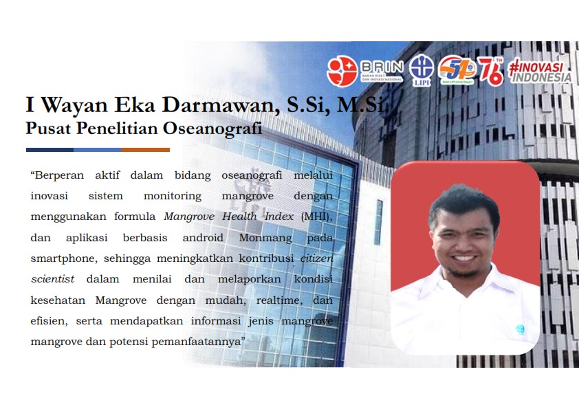 Kedua, I Wayan Eka Darmawan, berperan aktif dalam bidang oseanografi melalui inovasi sistem monitoring mangrove dengan menggunakan formula Mangrove Health Index (MHI), dan aplikasi berbasis android Monmang pada smarthphone, sehingga meningkatkan kontribusi citizen scientist, dalam menilai dan melaporkan kondisi kesehatan Mangrove dengan mudah,real time dan effisien serta mendapatkan informasi jenis mangrove-mangrove dan potensi pemanfaatannya.