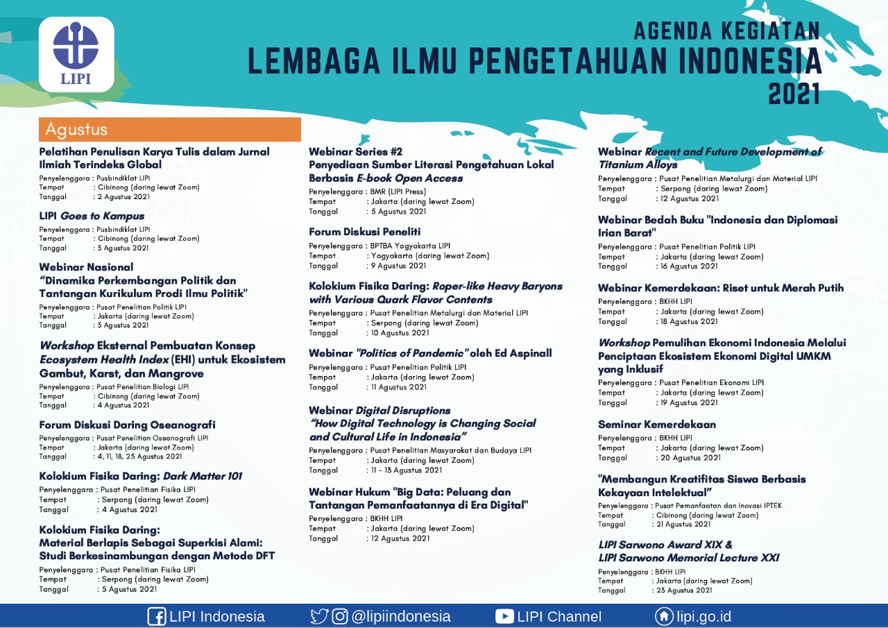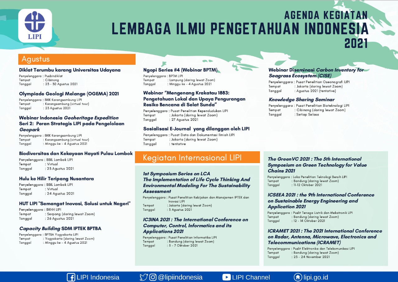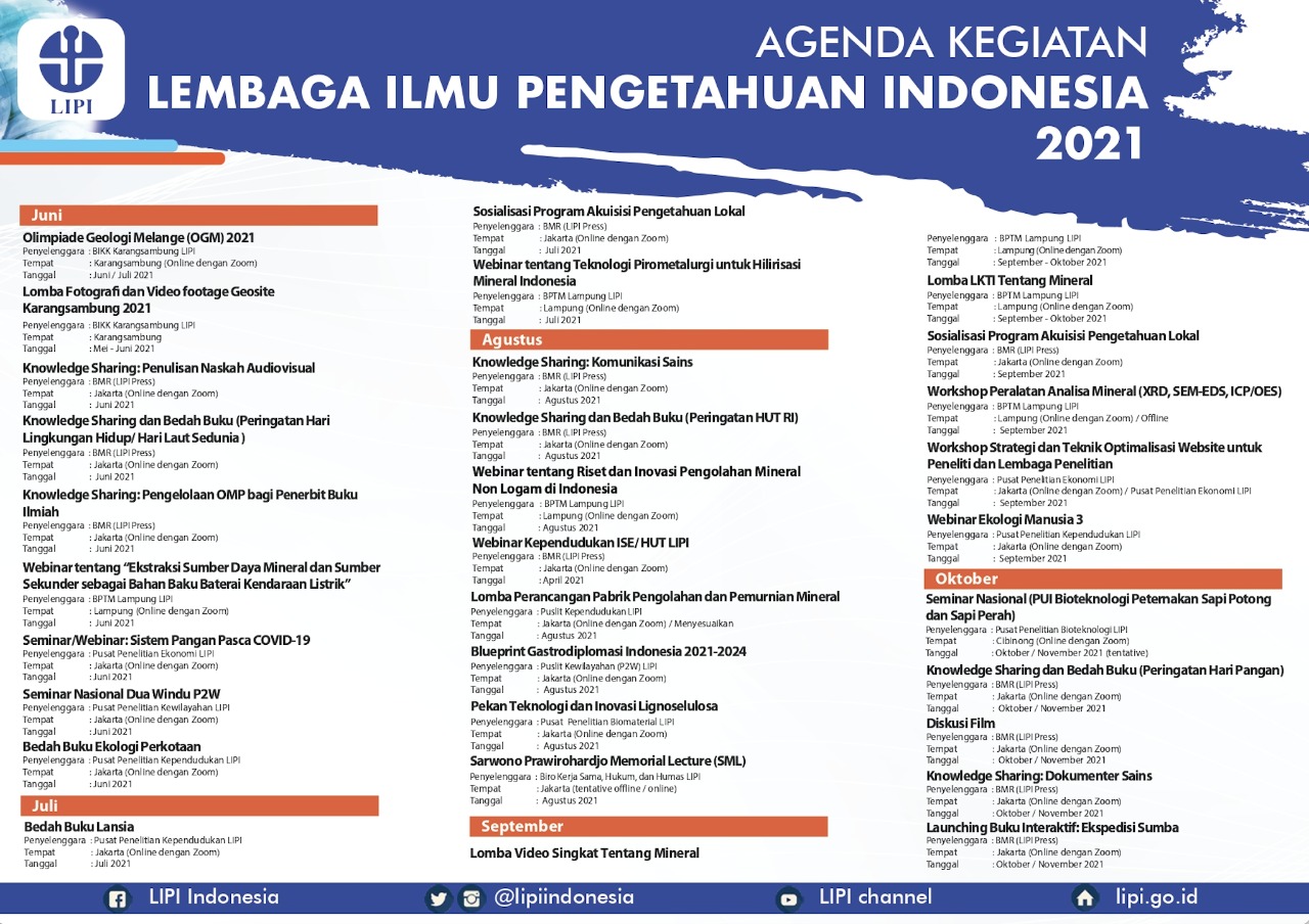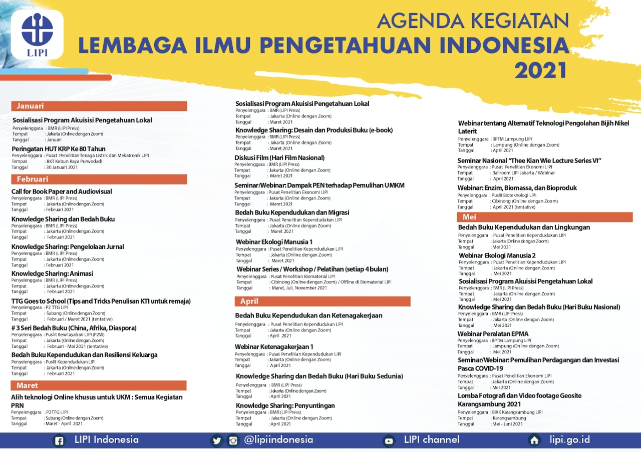 Agenda kegiatan LIPI Tahun 2021 dapat diunduh