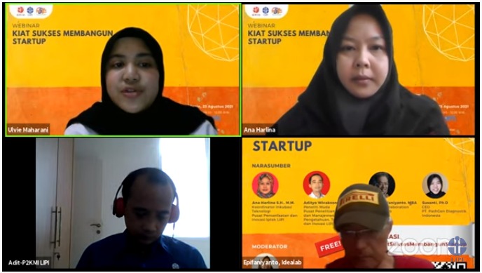 Cibinong. Humas LIPI. Beberapa tahun terakhir perkembangan startup di Indonesia cukup signifikan baik itu startup dengan level unicorn bahkan decacorn lahir di Indonesia untuk tingkat Asia maupun global. “Startup mulai bermunculan di Indonesia tepatnya mungkin beberapa tahun yang lalu. Tetapi kalau dilihat perkembangannya masih sangat kecil dibandingkan negara-negara berkembang lainnya. Untuk itu kami menghadirkan peneliti,dan praktisi dari Idealab dan PathGen. Harapannya dari webinar ini dapat menjadi pegangan dan panduan seperti apa startup di Indonesia. Bagaimana cara kolaborasi dengan para inkubator dan juga dengan para peneliti. Serta bagaimana marketnya di pasar Indonesia khususnya dan pasar global umumnya,” kata Ana Harlina Koordinator Inkubasi PPII LIPI pada webinar “Kiat Sukses Membangun Startup”, padaSenin (23/8).