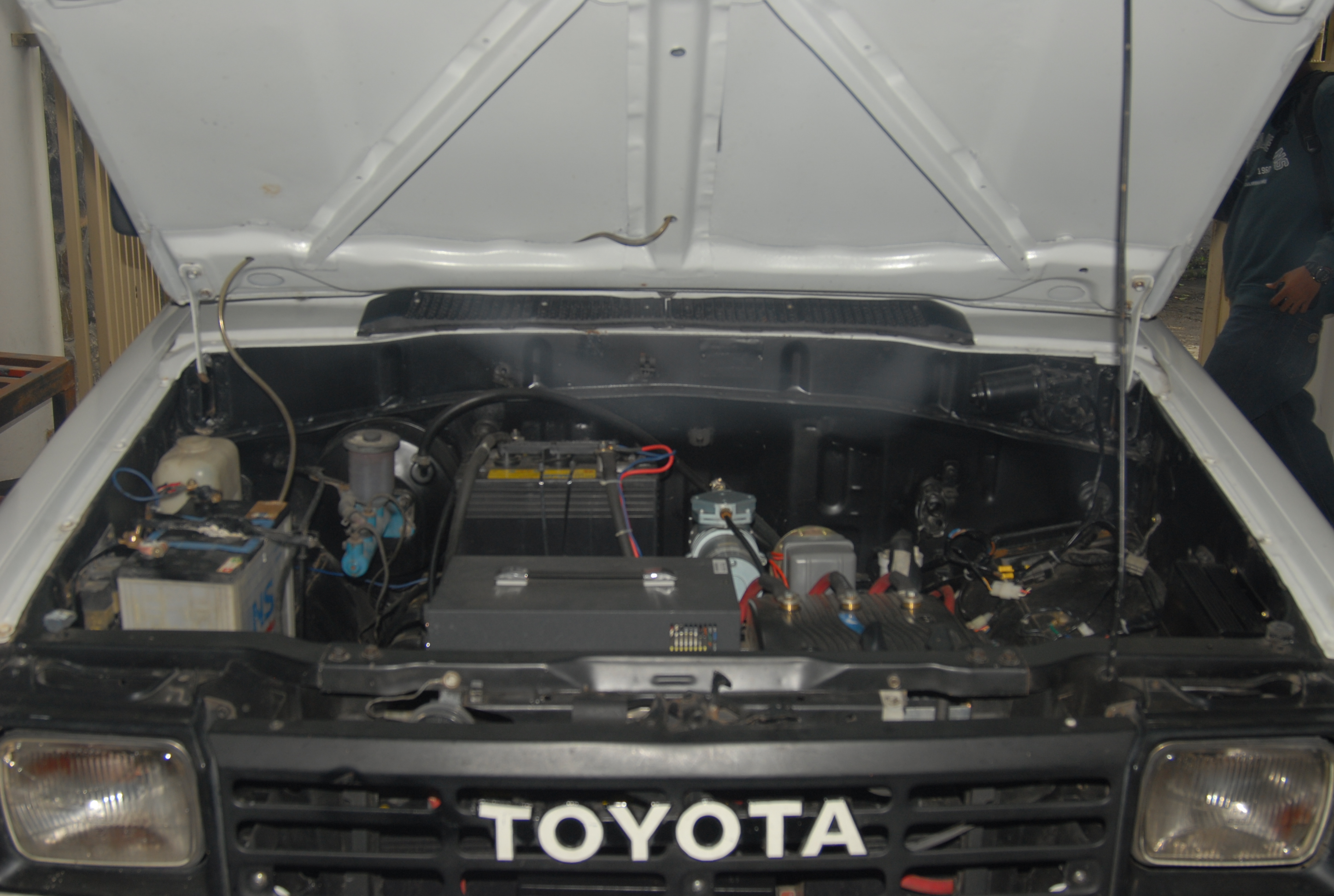 Inilah spesifikasi kijang listrik yang telah dikonversi, yaitu Motor Type: 3-Phase Induction Motor, Nominal Voltage: 96 VAC, Peak Power: 52 HP, Max. Speed: 6500 rpm, Peak Torque: 156 nm, Controller: 96V/550A, Battery Pack: SLA-Deep Cycle, 96V/235Ah, @6V/235Ah, Charger: 96V/25A dan Perfomance: 120 Km/h (75 Km/Charge).