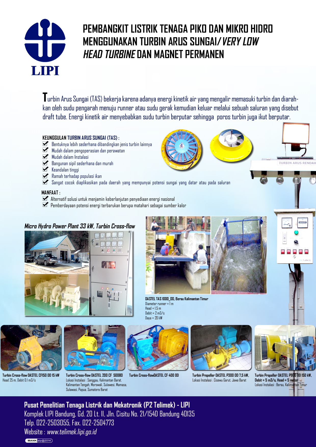 Brosur Pembangkit Listrik Tenaga Piko dan Mikro Hidro Menggunakan Turbin Arus Sungai/Very Low Head Turbine dan Magnet Permanen