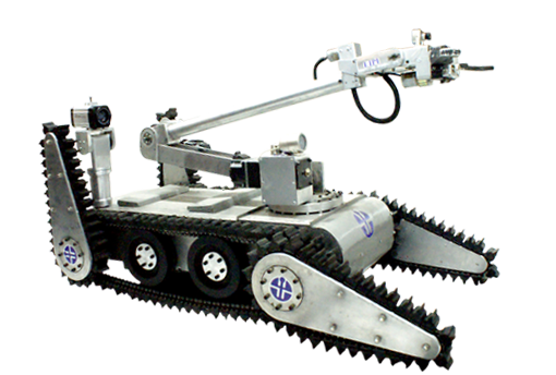 Robot dilengkapi lengan dengan gripper, sehingga proses penjinakkan bom dilakukan dengan membawa bom ke tempat yang lebih aman untuk dijinakkan. Robot dioperasikan dari jarak jauh dengan menggunakan komunikasi nirkabel dan operator mengoperasikan robot menggunakan joystick. Pengontrolan lingkungan sekitar dilakukan melalui citra visual yang dikirim oleh kamera yang terpasang pada robot. Paten terdaftar dengan Nomor : P00201200556, tertanggal 13 Juli 2012.